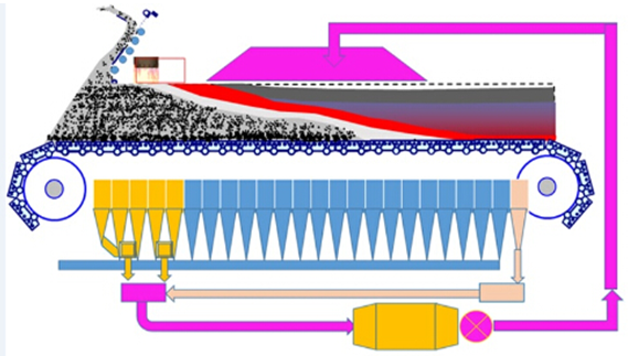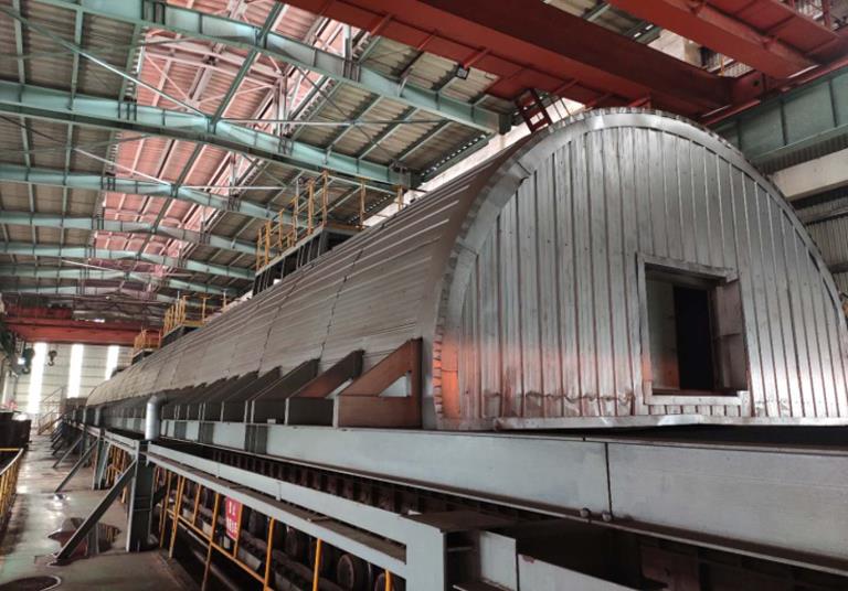 循環煙氣罩的作用是將循環煙氣均勻地分配到燒結機料面上,循環煙氣罩為負壓吸附式,該循環煙氣罩為拱形結構,通過立柱支撐在燒結機骨架上。循環煙氣罩為活動式結構,方便拆卸和吊裝。
